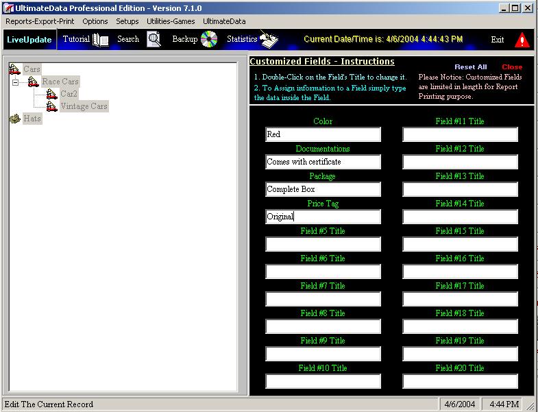 UltimateData™ provides you with twenty (20) customized fields. You can