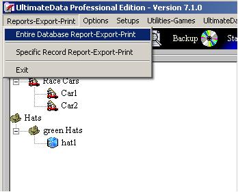 the pull-down menu: 'Reports-Export-Print' and choose: 'Entire Database
