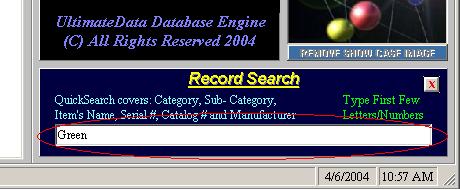 UltimateData™ will highlight the found record with a BULLS EYE ICON!