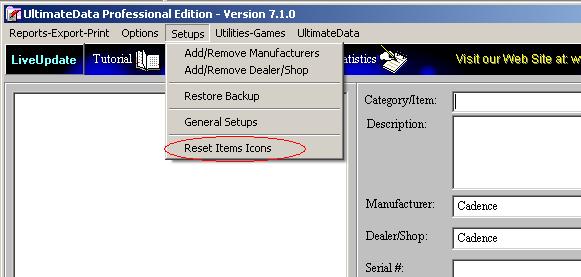 click on the pull-down menu: Reset Items Icons'. This operation will