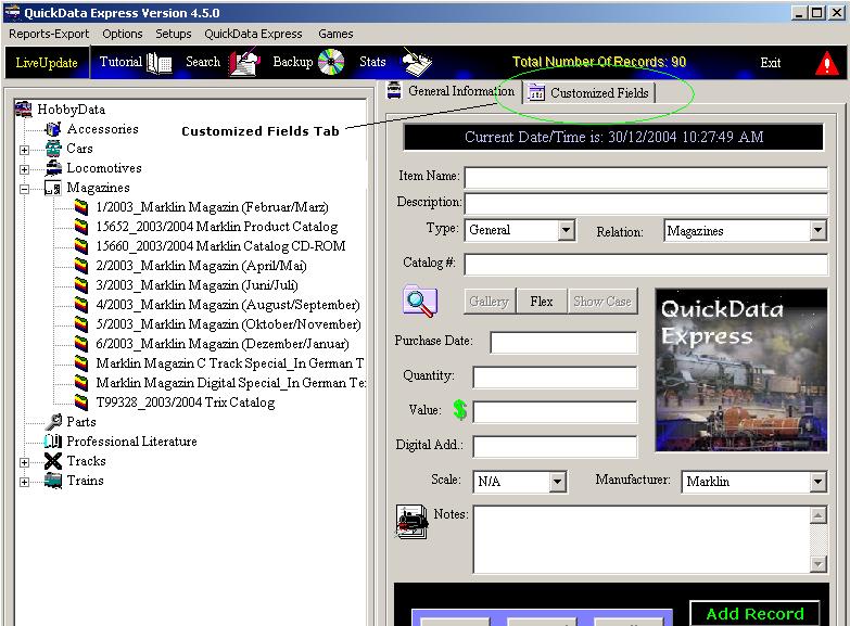QuickData Express™ provides you with twenty (20) customized fields. You can