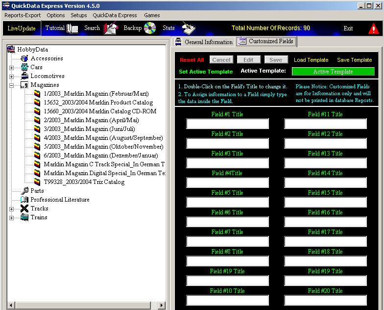 QuickData Express™ provides you with twenty (20) customized fields. You can customize the field title and content.
