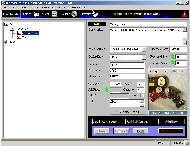 Usage: When you Add or Edit an item the program will place