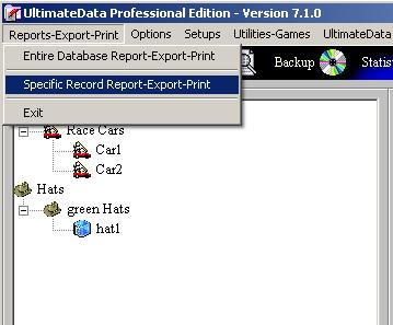 pull down menu and select: 'Specific Record Report-Export-Print'.