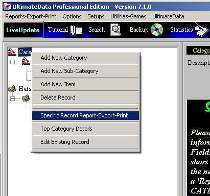 - Right Click on a selected Category, Sub-Category or Item. A pull-down menu will