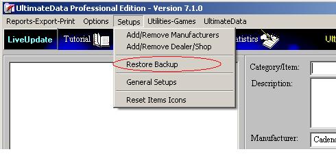 Click on this pull-down menu to open the 'Restore Backup'